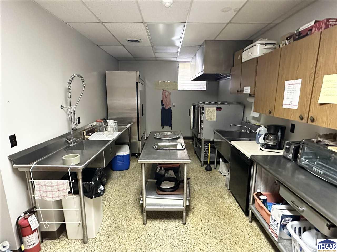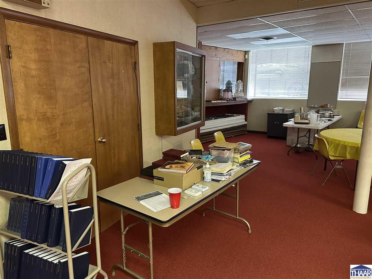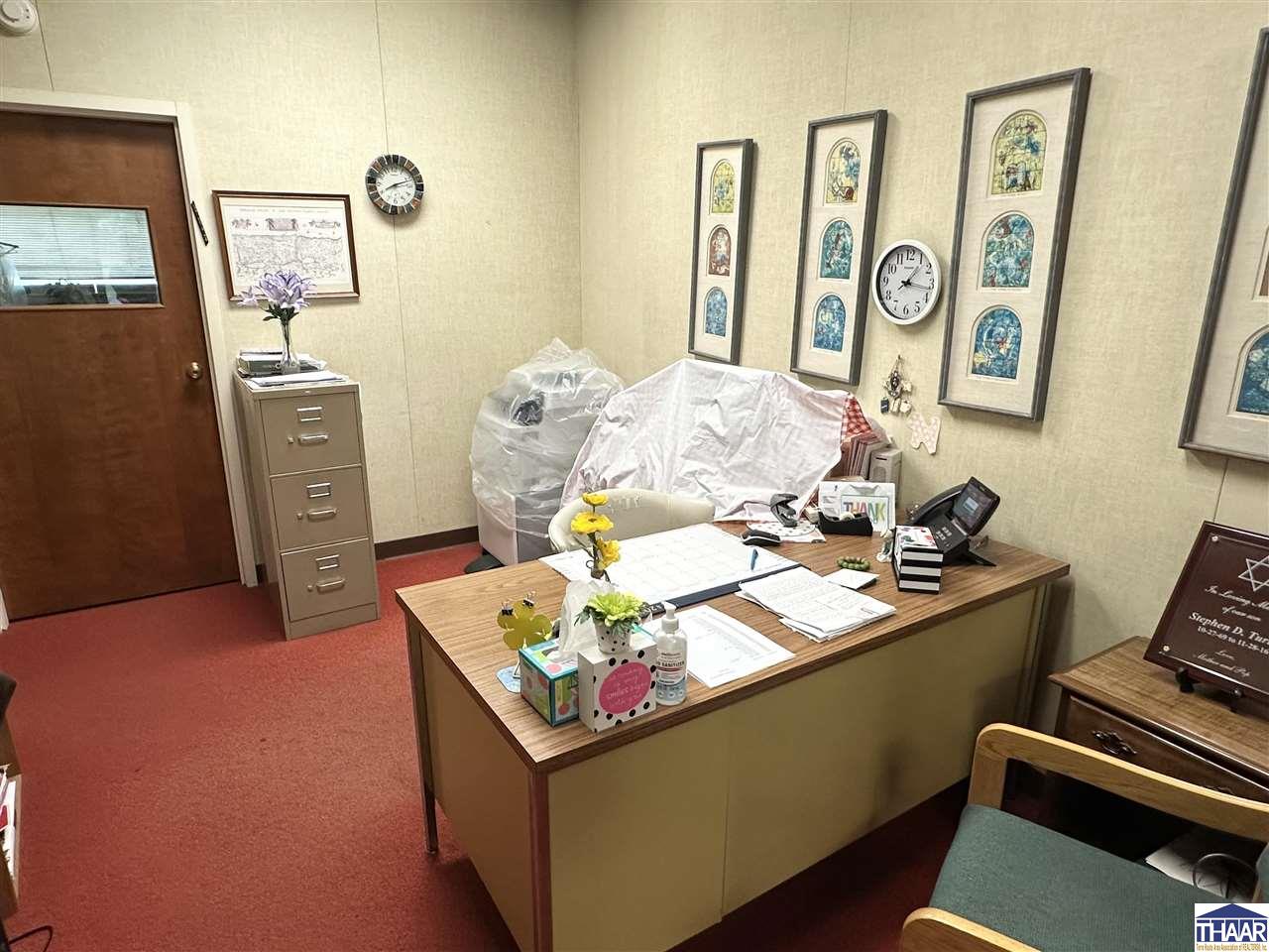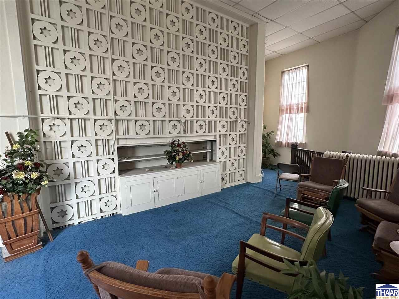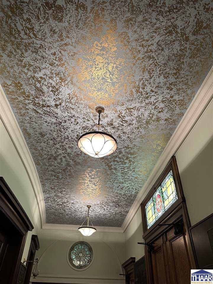 Opportunity to acquire the historic United Hebrew Congregation of Terre Haute, a well-maintained house of worship located in the heart of Terre Haute, Indiana. The property offers 8,666 finished square feet situated on a generous 1.095 acre lot, providing ample space for worship services, community gatherings, educational programs, or nonprofit operations. The main building features a traditional sanctuary along with functional and flexible interior space including two offices, two bathrooms, and a finished basement that can accommodate classrooms, meetings, fellowship events, or additional programming. A well-equipped kitchenette includes a nice stainless-steel sink, prep table, stainless-steel refrigerator, and oven with hood, making it ideal for hosting gatherings, community meals, and events. The property also benefits from paved onsite parking with approximately 30 parking spaces, ensuring convenient access for congregants and visitors. In addition, a secondary building of approximately 400+- square feet provides valuable extra storage or utility space. Situated on 1.095 acres in the heart of Terre Haute, this property offers strong accessibility and a unique opportunity for continued use as a house of worship or potential adaptive reuse for a church, nonprofit organization, community center, or educational facility. Schedule a showing Today!
