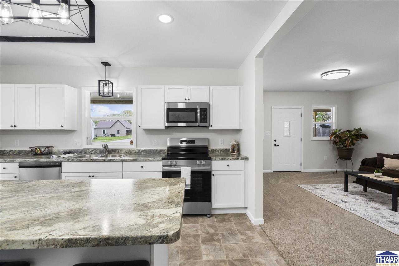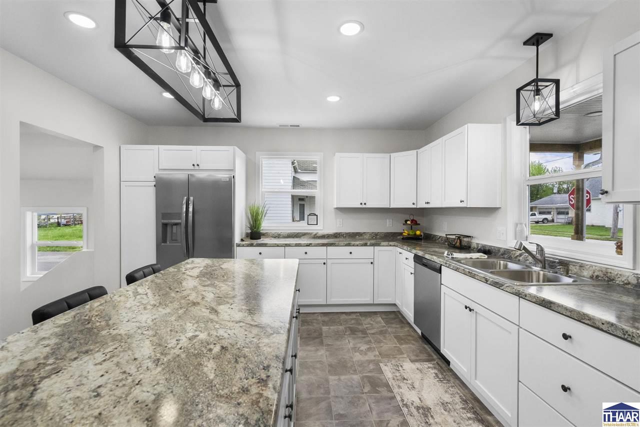 Completely Remodeled 3-Bed, 2-Bath Gem on a Corner Lot in Dugger, IN! Welcome home! This stunning one-story home has been completely remodeled from top to bottom and is ready for its new owner. Featuring 3 spacious bedrooms and 2 full bathrooms, this beauty sits proudly on a large corner lot with a 2-car detached garage complete with a loft; perfect for extra storage, a workshop, or hobby space. You'll fall in love the moment you step onto the expansive covered front porch, perfect for relaxing with your morning coffee. Inside, you'll find all new plumbing, electrical wiring, flooring, paint, fixtures, and windows. The brand-new kitchen boasts beautiful cabinetry, stylish countertops, and new stainless steel kitchen appliances (including a washer and dryer). The primary bedroom is a true retreat, featuring a walk-in closet and a refined ensuite bath. Just off the kitchen, a large mudroom/laundry combo adds even more convenience and functionality to your daily routine. Located in the sleepy little town of Dugger, IN, this move-in-ready home offers small-town charm with modern updates throughout. You will NOT want to miss viewing this incredible property in person! Schedule a showing with your favorite REALTOR(r) today!